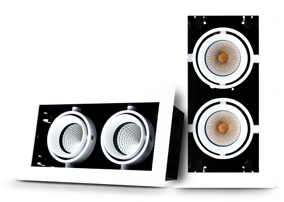Luminarios para bulbos MR16 con diseño modular multidireccional. Adaptables a la estética de espacios residenciales y comerciales.